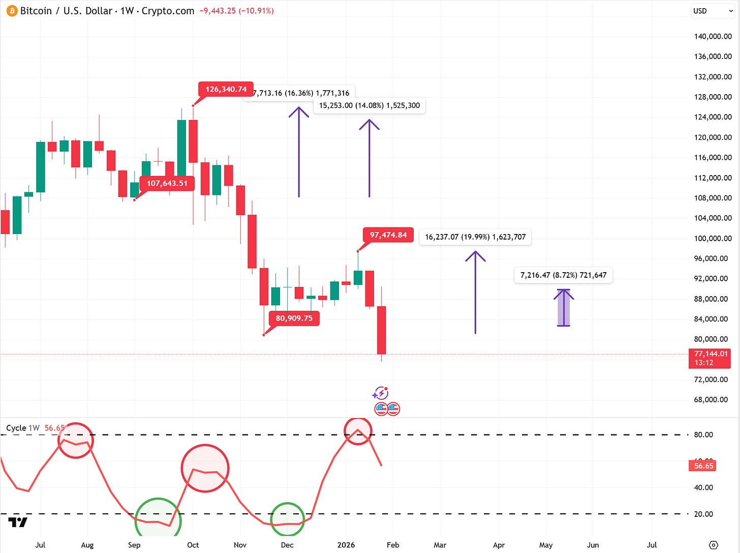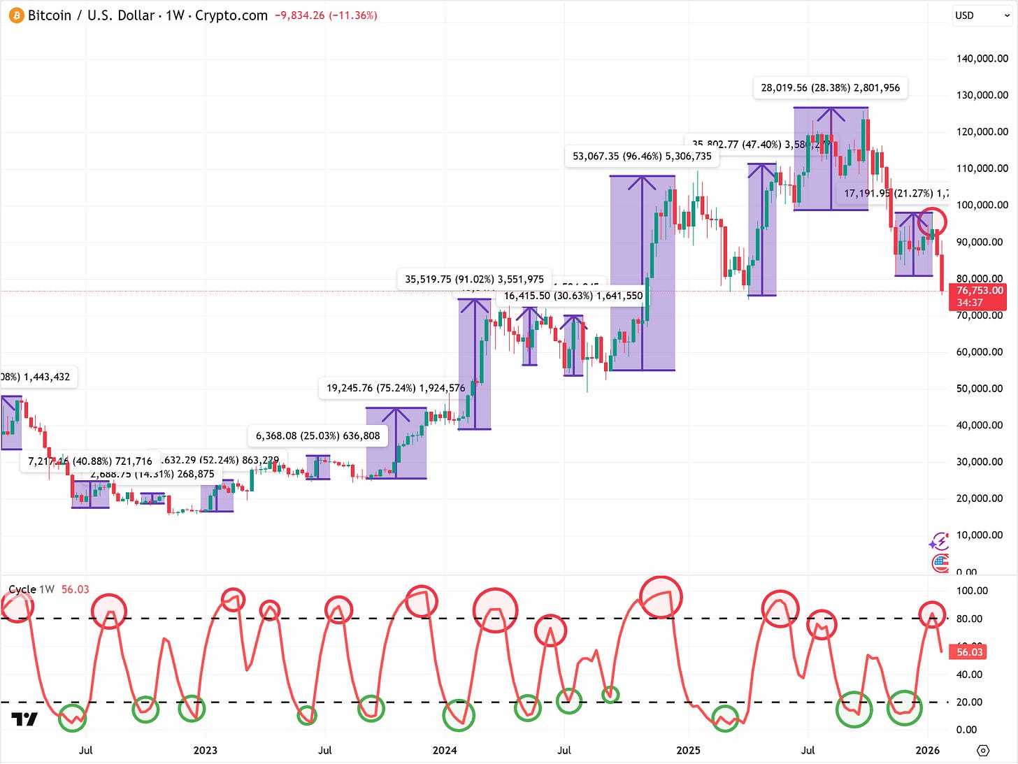 In rarer cases, the Weekly Cycle pushes above 80 and then reverses within the same candle, sending price sharply lower before you can react.